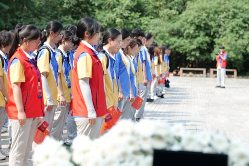 在莊嚴肅穆的壯士廣場,華西五營“未來之星”以青春之儀致敬抗戰英烈:國歌鏗鏘奏響民族氣節,垂首默哀緬懷350萬出川忠魂,潔白花籃承載深切追思。黨員高舉右拳重溫入黨誓詞,團員緊握信念重宣入團誓言,在“為了和平收藏戰爭”的箴言中完成1分鐘神圣致敬!