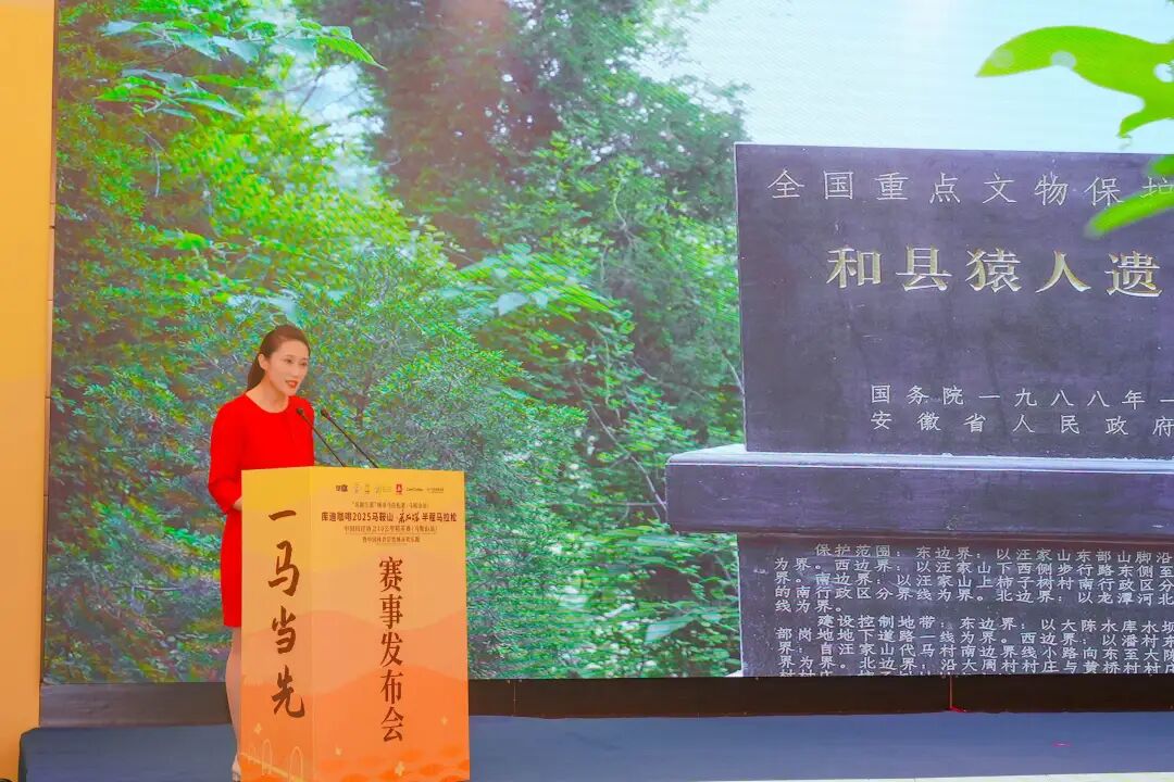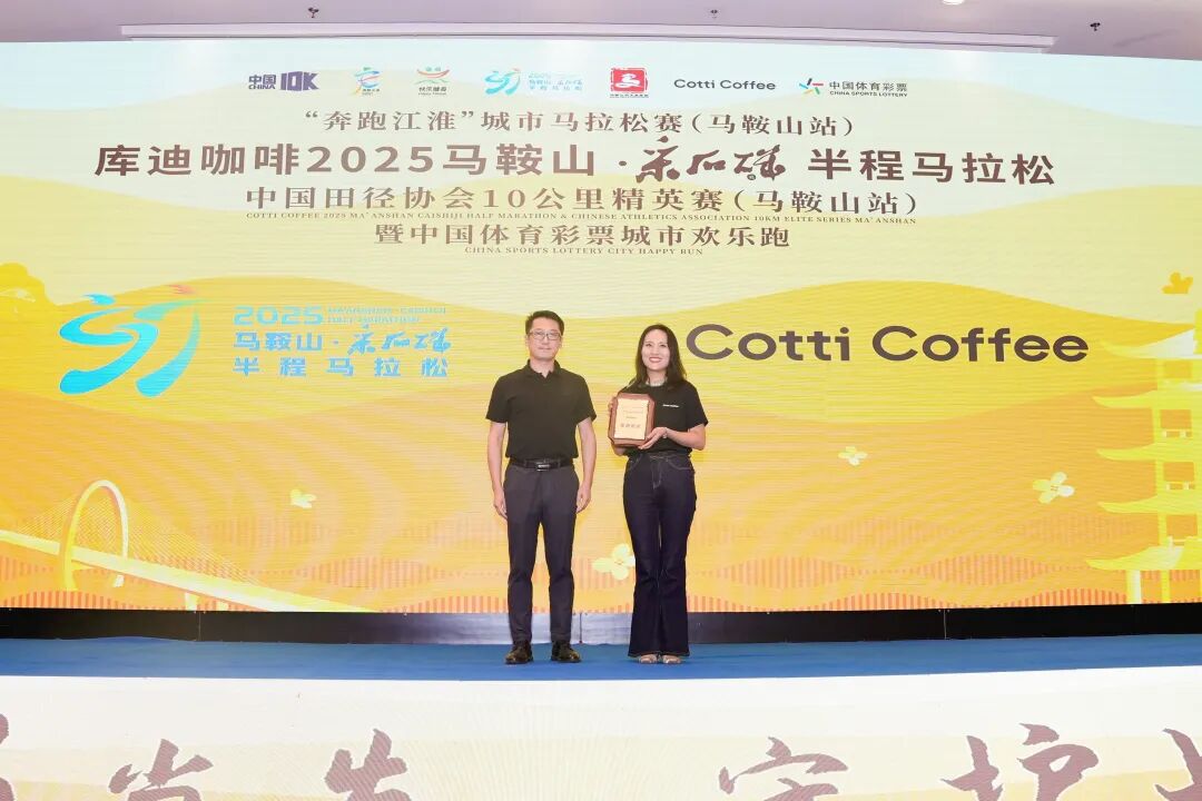 發布會現場,馬鞍山市文旅集團董事長范文江代表組委會為賽事冠名單位庫迪咖啡授牌。