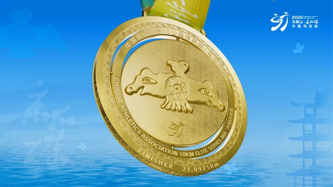 2025采馬完賽獎牌深度挖掘凌家灘文化內涵,提取出土文物玉鷹以及寓意吉祥如意的祥云紋理等元素。采用雙層可旋轉結構,外層可上下轉動、內層能左右旋轉,打造靈動交互體驗。將古老歷史符號與馬拉松運動活力結合,讓跑者完賽紀念兼具文化厚重感與創意趣味。