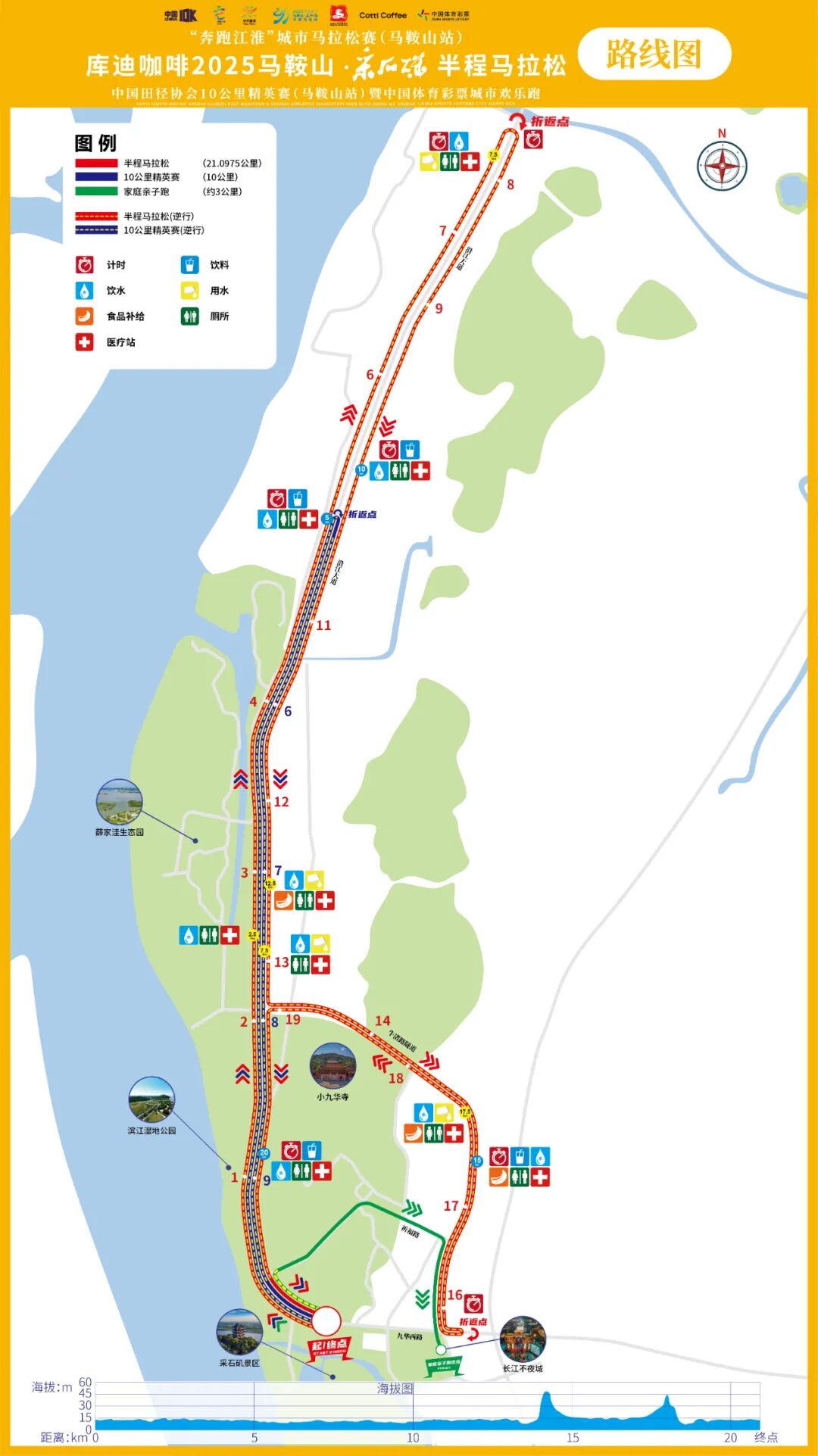 2025采馬深度融入長江文明底蘊,以文化浸潤打造獨具特色的馬拉松品牌。賽道依長江而設,跑者從采石磯出發,一路沿江奔跑,途經坐落于濱江沿線的濱江文化公園、薛家洼生態園、小九華寺等景區,盡覽浩蕩江景,感受長江文化、凌家灘玉文化、詩歌文化的交融。