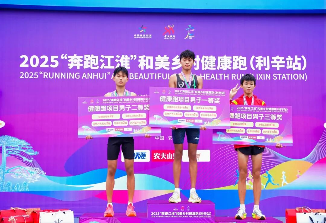 李蘇微(成績33分43秒,利辛本土選手)獲得健康跑項目男子一等獎;張建雨(成績34分15秒)獲得健康跑項目男子二等獎;馬海洋(成績36分06秒)獲得健康跑項目男子三等獎。